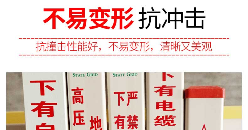 標志樁又稱為警示樁、標識樁、標志樁,常用于電力、通信、燃氣、自來水、鐵路地埋管線路徑指示標志。用于戶外、綠化帶、灌木叢、頂管兩側管線路徑指示,起到警示作用的新型產品。