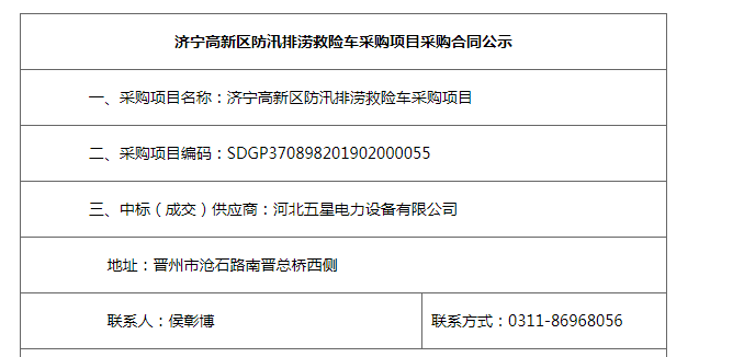熱烈祝賀河北五星濟(jì)寧高新區(qū)防汛排澇救險(xiǎn)車采購(gòu)項(xiàng)目一舉中標(biāo)!