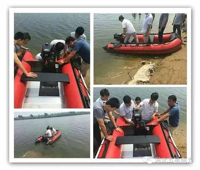 河北省一家水庫(kù)管理局從河北五星電力設(shè)備有限公司緊急采購(gòu)15艘防汛搶險(xiǎn)橡皮舟,河北五星“應(yīng)急響應(yīng)技術(shù)服務(wù)隊(duì)”三名隊(duì)員在客戶(hù)收到貨后,長(zhǎng)途奔波數(shù)百公里,為客戶(hù)現(xiàn)場(chǎng)調(diào)試設(shè)備,免費(fèi)提供操作技術(shù)培訓(xùn),受到客戶(hù)贊譽(yù)!